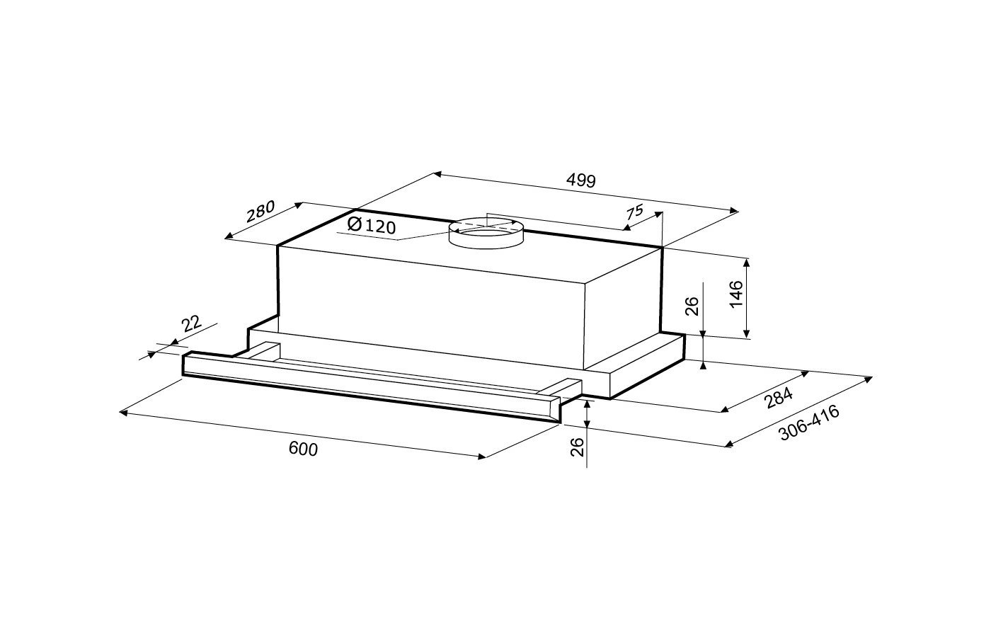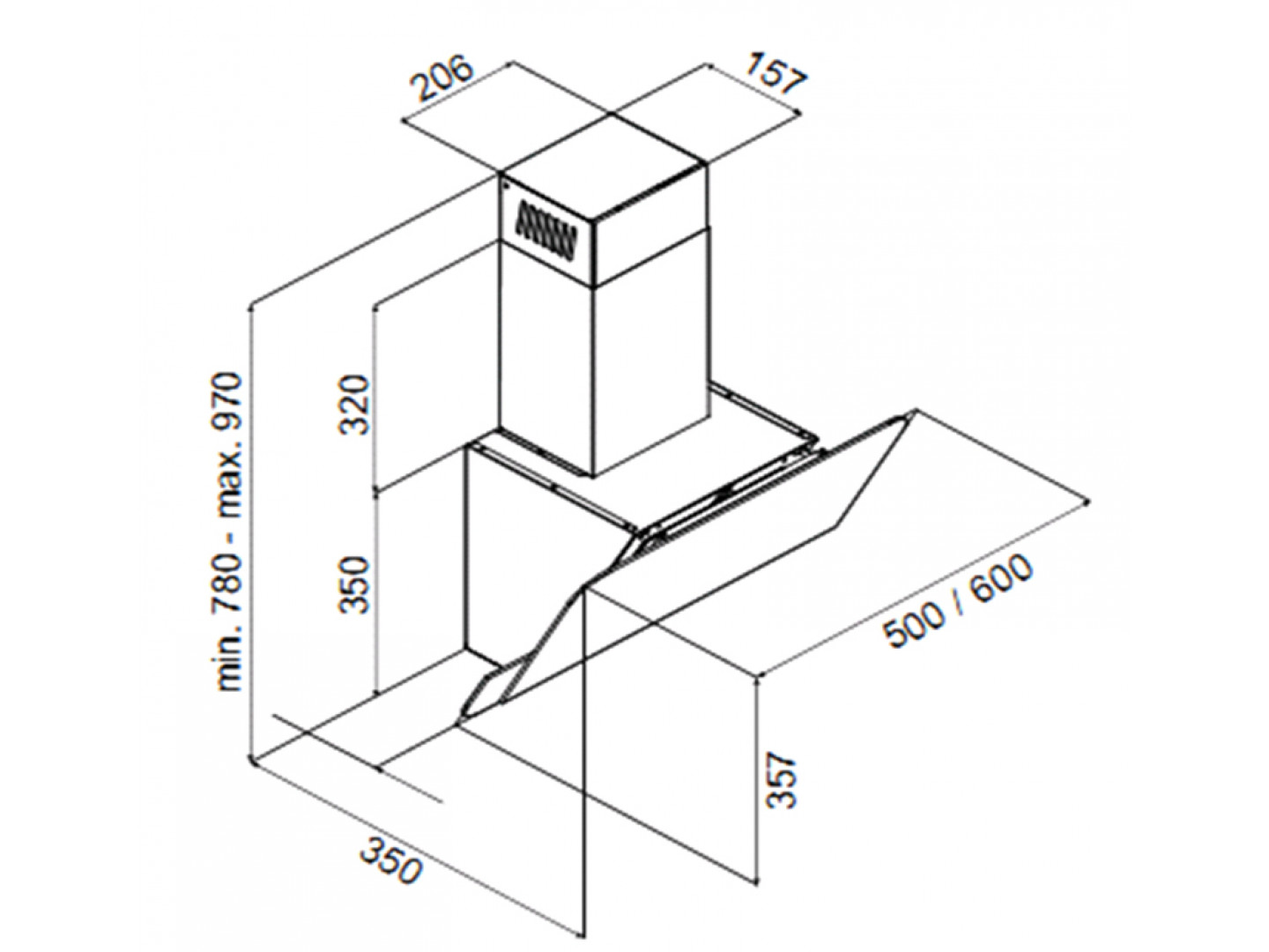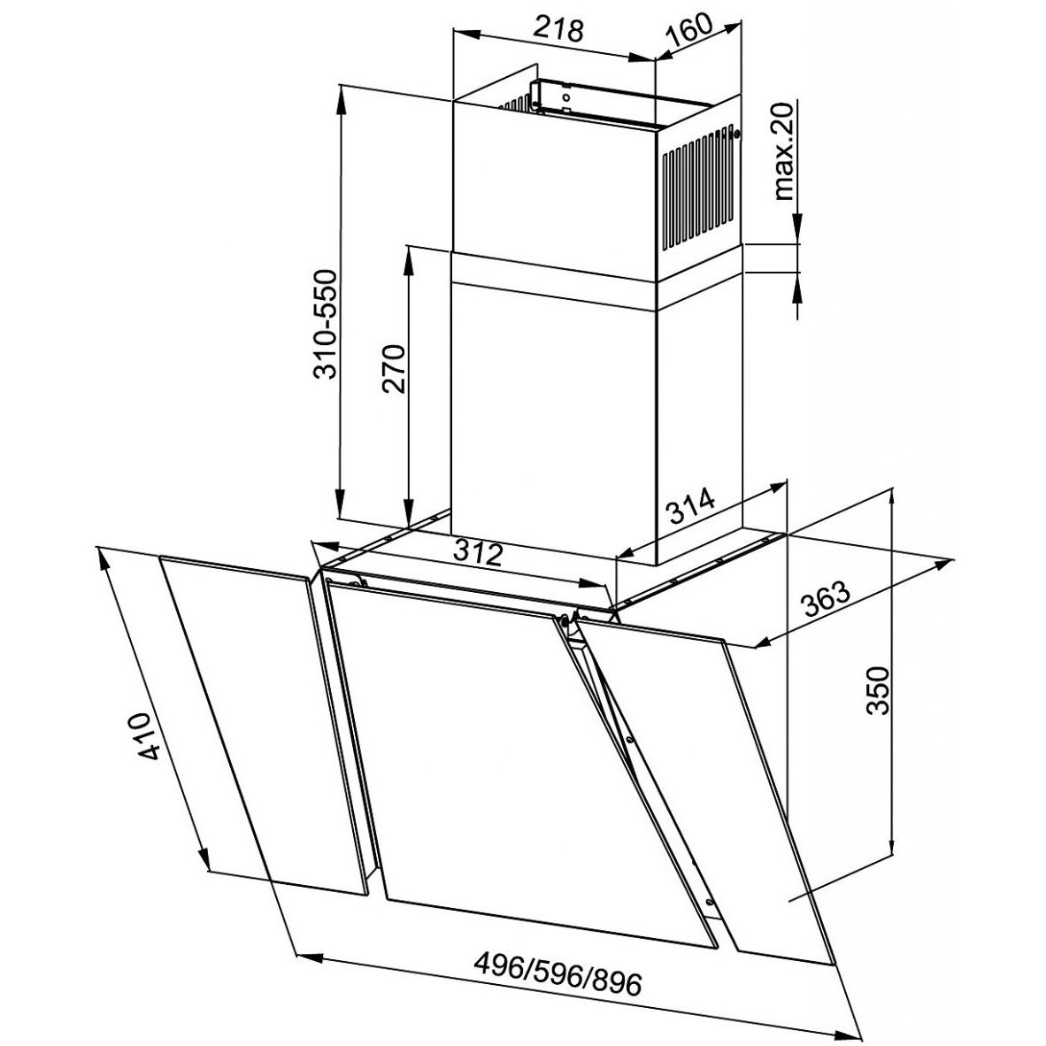 Угловая модель предназначена для монтажа вытяжки в углу помещения.