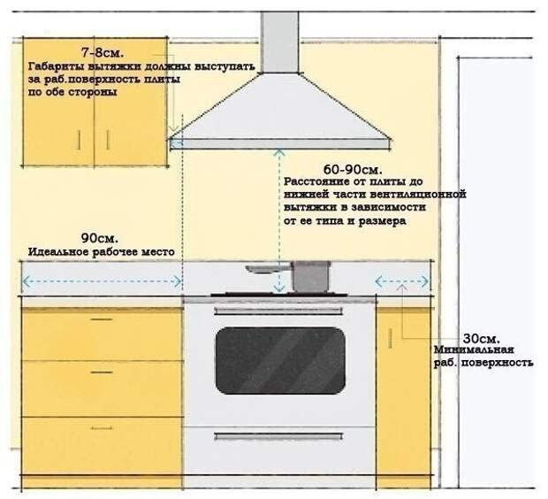 Расстояние от плиты до вытяжки: стандарты и нормы установки