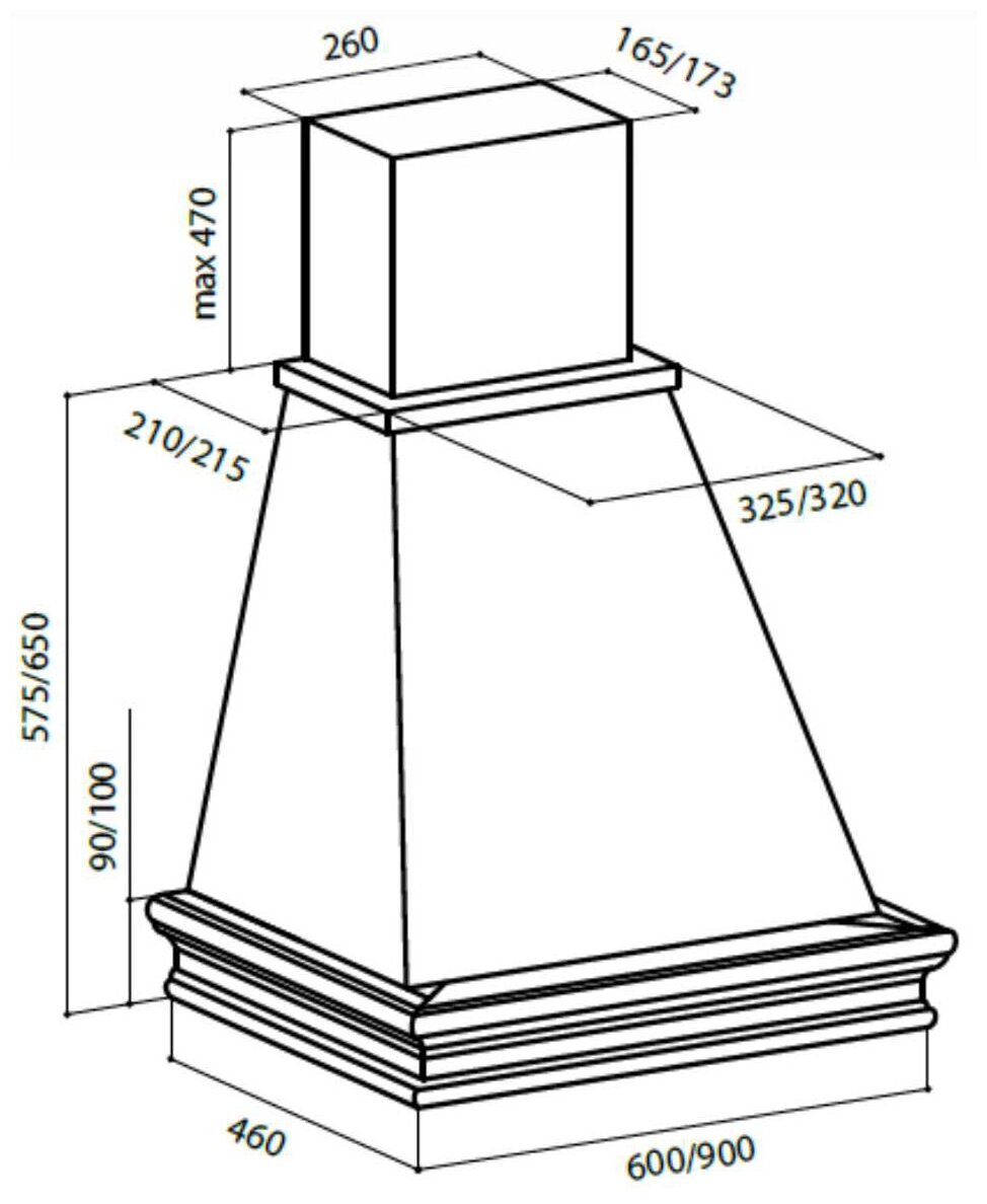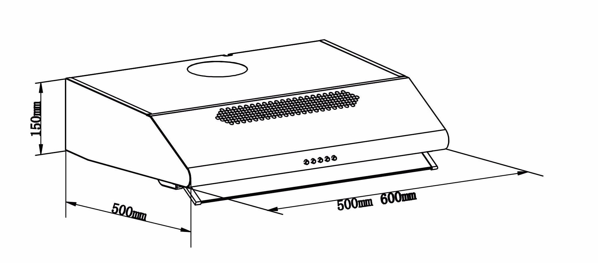 Размеры вытяжки соответствуют размерам плиты и могут варьироваться в зависимости от вашей кухни
