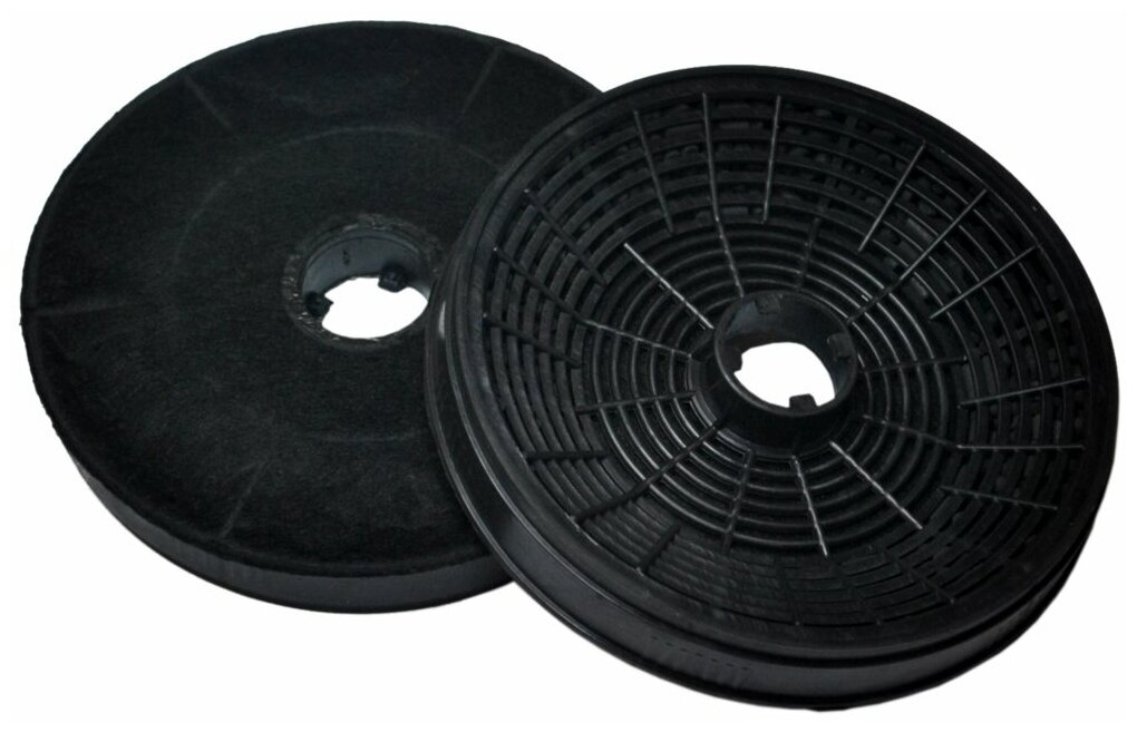 Универсальный угольный фильтр в вытяжке на кухне снижает работу техники: воздух всасывается немного хуже нежели в традиционной модели, однако правильно установленная вытяжка способна работать на кухне превосходно, если зона готовки не слишком большая. Обычный угольный фильтр выглядит как пластиковая основа (круглая или прямоугольная) с отверстием для активированного угля.