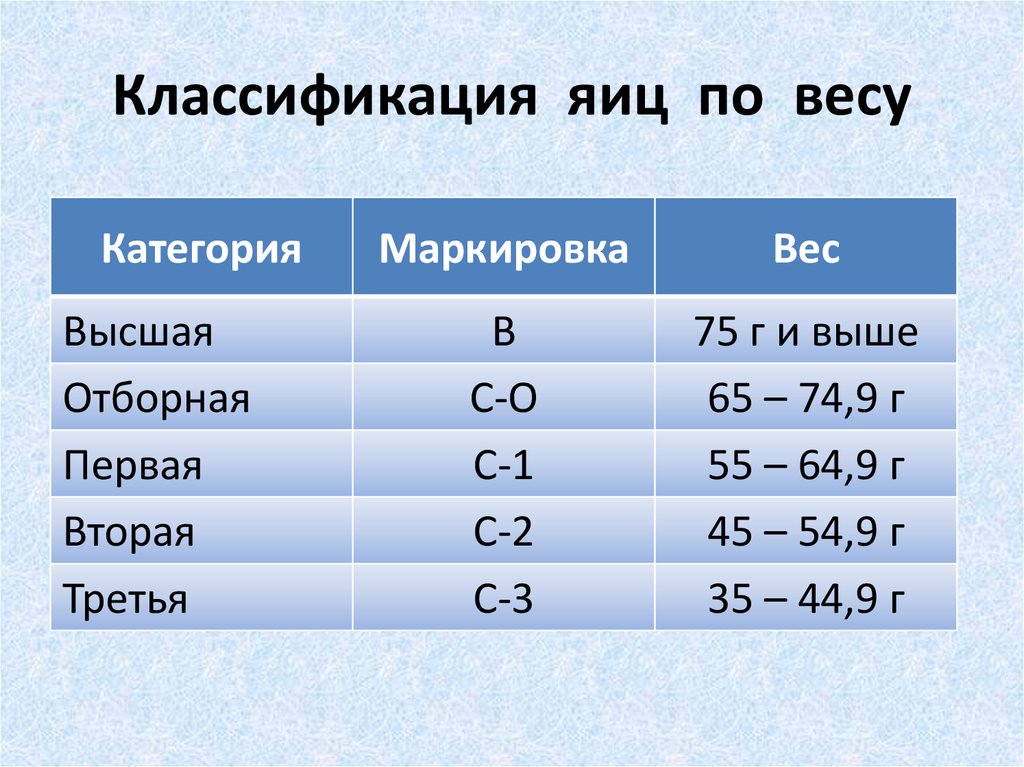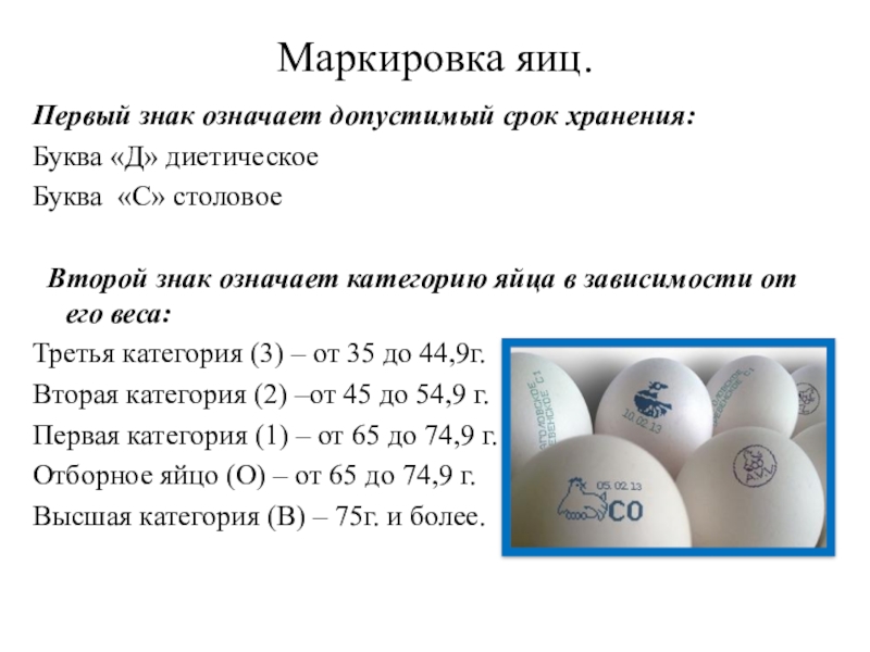 Для фабричных яиц по регламентам государственного стандарта не существует одного прописного срока, поскольку вся продукция подразделяется на 3 категории, данные о которых наносятся на скорлупу в виде маркировки.