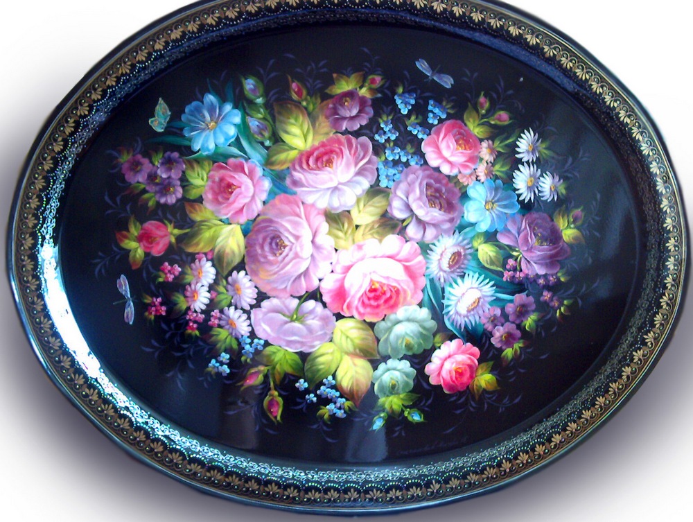 — украсить поднос цветочной росписью.
