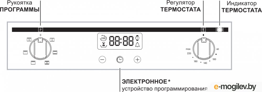 Освещение духовки – лампа освещения внутри включается в независимости от выбранного режима готовки.