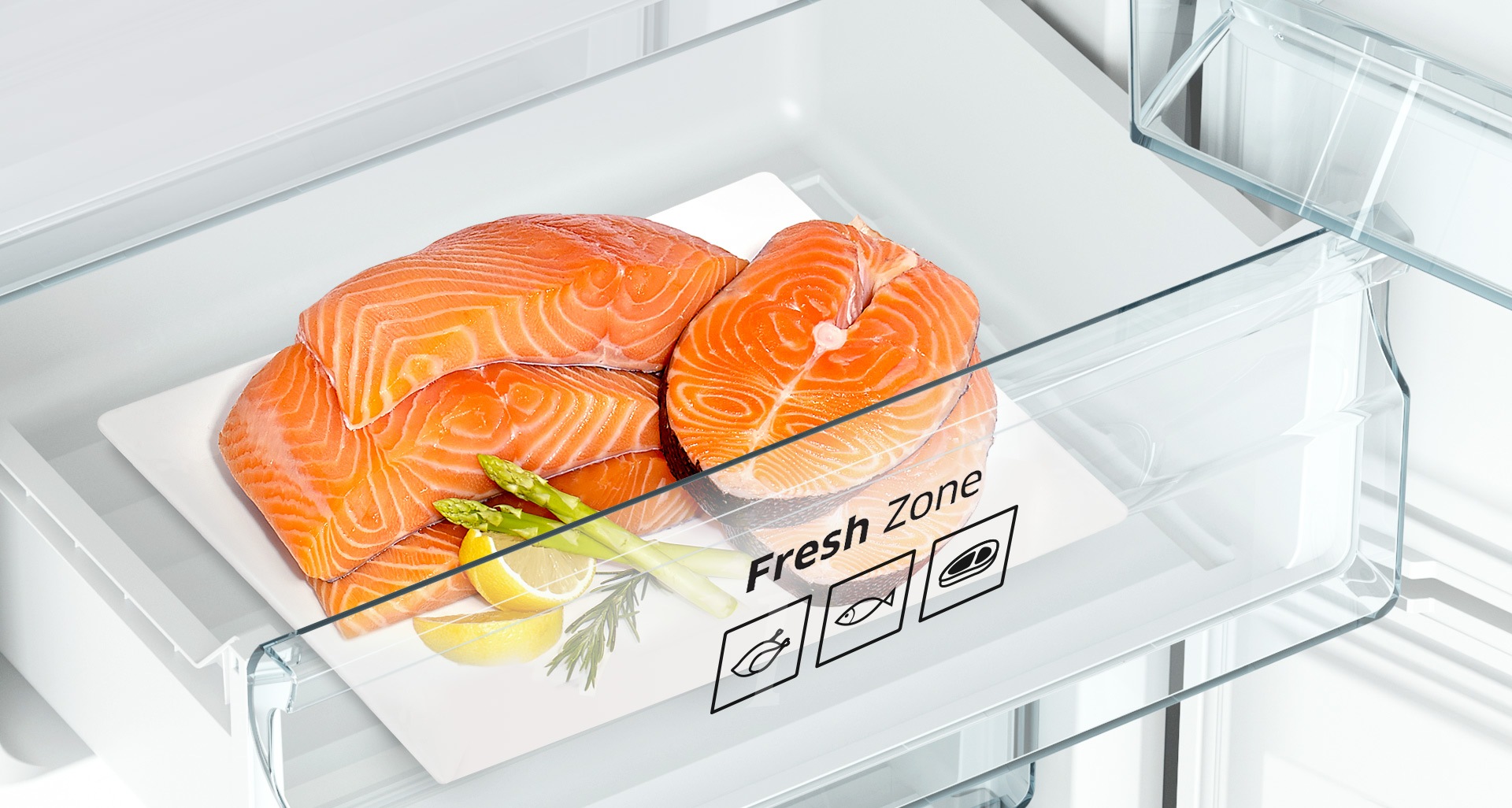 Несмотря на идеальные условия для сохранения свежести овощей, фруктов и мяса в зоне BioFresh, продлить хранение свежей рыбы крайне сложно. После многочисленных исследований ученых из Института Макса Рубнера выяснилось, что при температуре от 0°C до -2°C срок хранения свежей рыбы увеличивается на 56%.