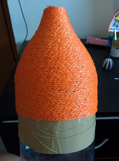 2. Когда вы доберетесь до верха лампы, прикончите ее, отрезав лишнее и приклеив веревку.