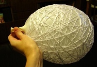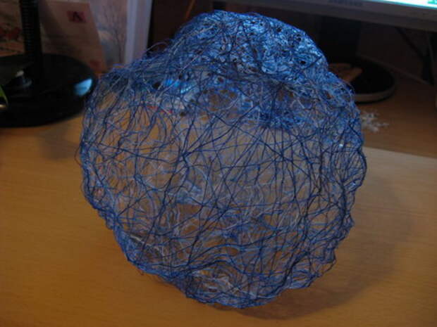 И нам следует дать возможность клею подсохнуть, чтоб наш светильник приобрел форму необходимого качества. Лучше оставить его сушиться на ночь, подвесив за кончик шарика;