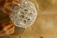 Завершающим этапом будет монтаж сделанного своими руками абажура в выбранном помещении. Процесс монтажа и подсоединения к сети лучше всего доверить мужчине, оставив себе приятную функцию контроля. Абажур из ниток своими руками готов! Светильник может быть разной формы и не только новый. Поделки из ниток и клея тем и хороши, что позволяют сплести новую жизнь старым вещам. Так, например, можно взять старый светильник, с негожим абажуром, предварительно сняв его. Сделать основу из пергамента для выпечки, соответствующую форме основы абажура. А далее плести, по уже известной нам технологии. Выполнение такого абажура проходит намного легче и быстрее, ведь светильник уже собран, нужно лишь видоизменить определенную часть и наслаждаться необычным элементом декора, сделанным своими руками. Кстати, отличным его дополнением смогут стать декоративные шары, также сделанные из ниток и клея.