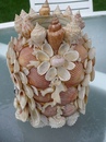 Далее вырезаем трафарет и наносим рисунок либо наносим изображение кистью, если у вас есть художественные способности. Даем эскизу просохнуть, заклеиваем его ракушками.