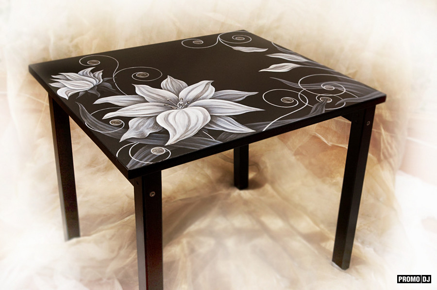 Художественно расписанные столы украсят интерьеры в этническом стиле или деревенском. Для детской комнаты подойдет стол с изображениями любимых мультяшных героев, зверушек или фрагментов сказок.