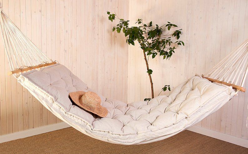 Подвесные кровати ассоциируются в нашем сознании с отдыхом на свежем воздухе, где можно расслабиться, слегка раскачиваясь и наслаждаясь пейзажем вокруг