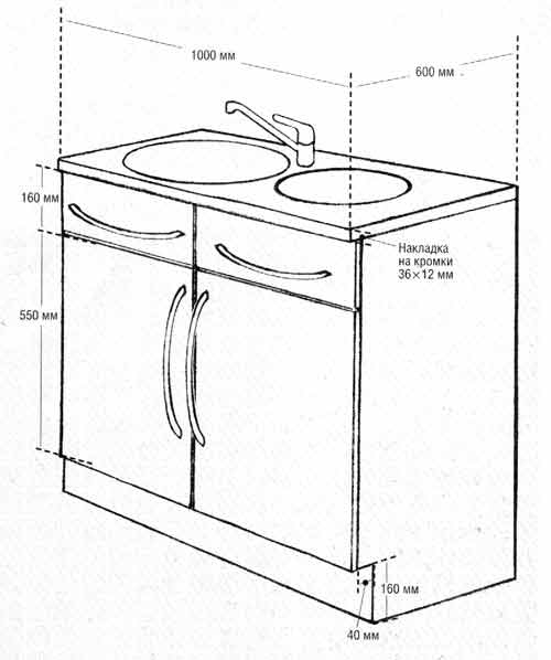 Если подходят стандартные образцы мебели, то и затруднений по оборудованию кухни будет меньше. Нужно просто пойти в мебельный магазин, выбрать подходящий по цене и вкусу вариант. В том случае, если вы не ищете легких путей или места, например, под шкаф с раковиной его недостаточно, то достойным выходом из этой ситуации будет изготовить мойку своими руками, соответствующую площади и запросам вашим.