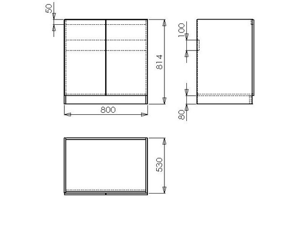 Модель кухонного шкафа под мойку с указанными размерами ширины, длины и высоты
