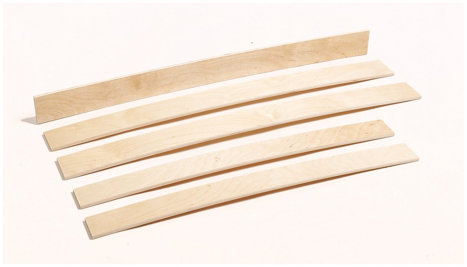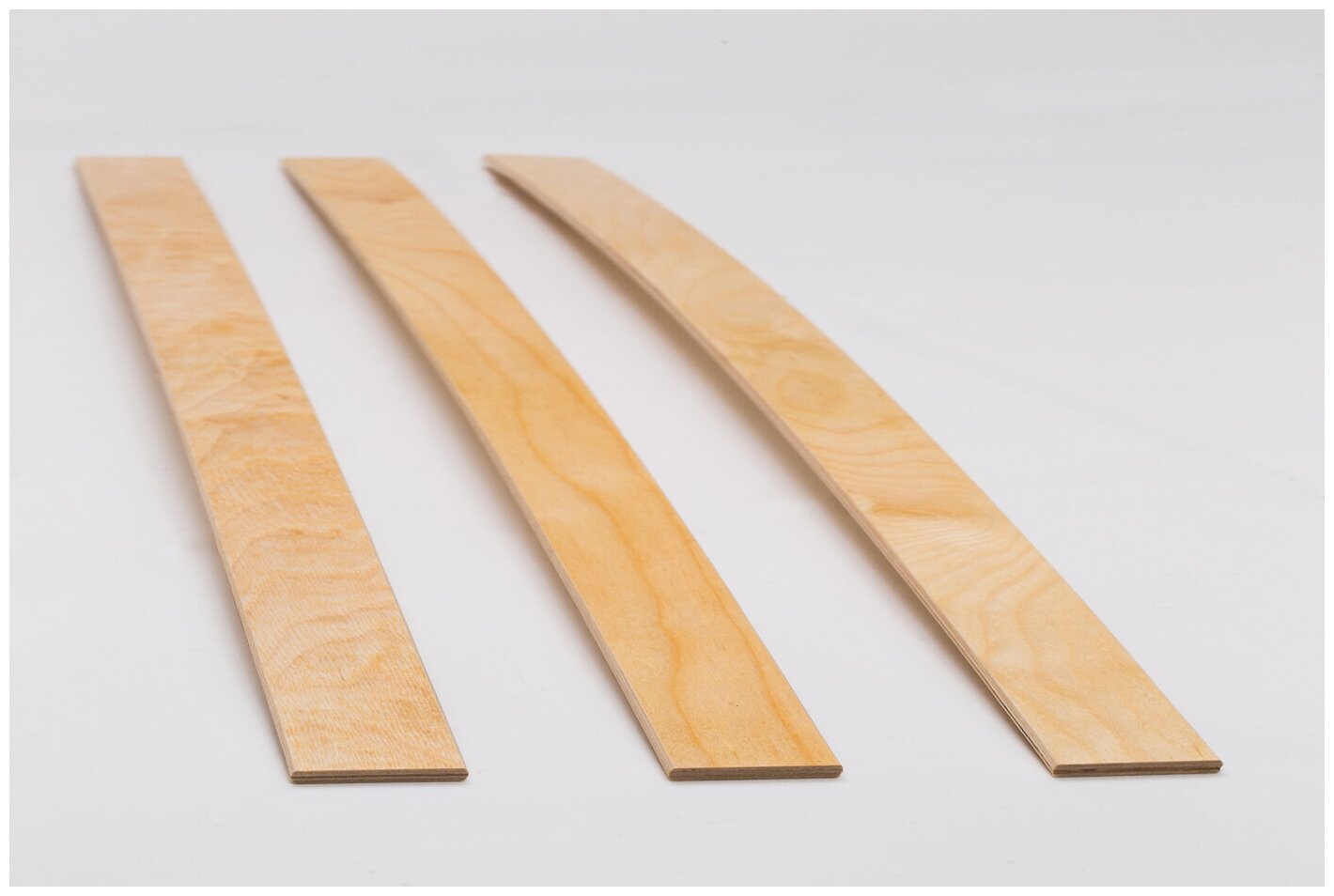 Ламели — поперечные рейки, крепящиеся к каркасу кровати и поддерживающие матрас. Они изготавливаются из деревянного массива. Перед монтажом рейки предварительно вымачивают и сгибают, чтобы они имели слегка выпуклую форму. Именно благодаря ей ламели обладают особой пружинистостью, которая уменьшает нагрузку на матрас.