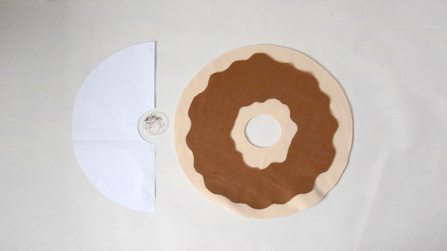 Вы можете прикрепить их в центре через каждый слой, чтобы скрепить их, если хотите. Пора делать пончики. Выкройка подушки своими руками выглядит как гигантский пончик.