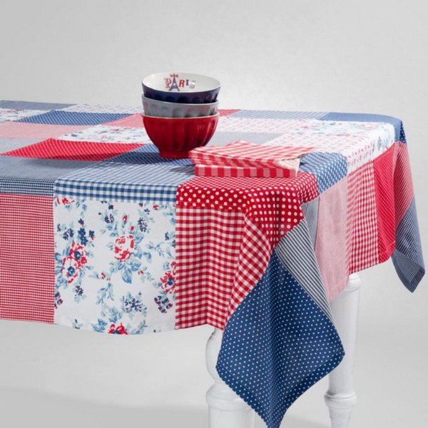 Такую скатерть можно сшить из практически любой ткани, подойдет даже отрез, который остался