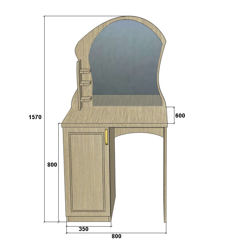 Самый доступный для начинающего мастера вариант – обычный столик на четырех ножках нужного размера. Даже зеркало в такой конструкции необязательно, поскольку его можно повесить на стену. Усложняют мебель различные ящички, тумбы, полки и столешницы необычной конфигурации. Это нужно учитывать при создании проекта. Кстати, чтобы быть уверенным в точности всех расчетов, готовый проект лучше найти в интернете.