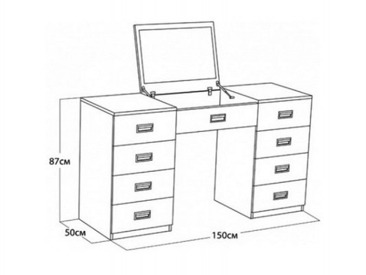 Направляющие для ящиков закрепляем саморезами к боковине туалетного столика или тумбы. Вдеваем ящичек в направляющие. Высверливаем на фасаде отверстие под ручку и устанавливаем фурнитуру. Если планируется изготовить своими руками туалетный столик с зеркалом, задняя стенка изделия должна быть выполнена из ДСП. На деталь устанавливается основа под зеркало, которая может быть специальным приспособлением либо рамой сложной формы.