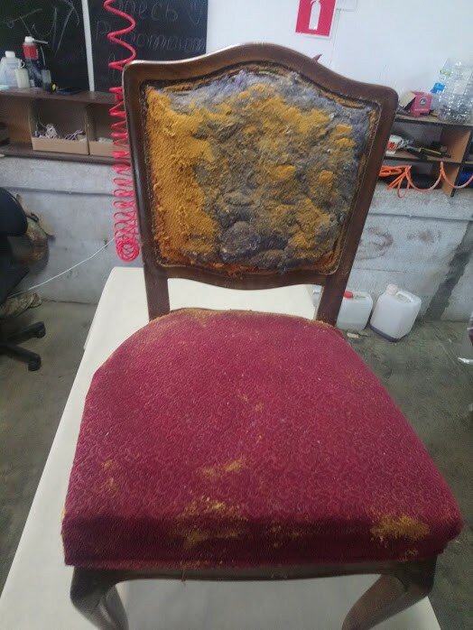- Умельцы обшивают стул со спинкой новой тканью или кожей.